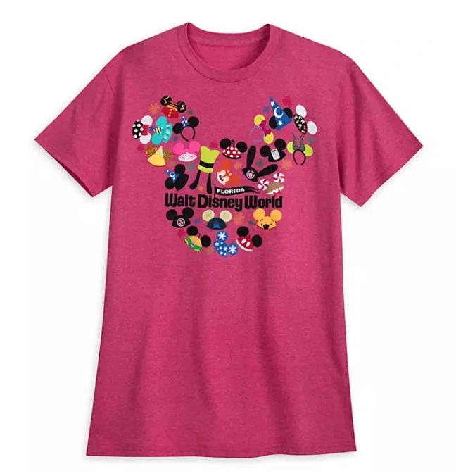 Hats off to your Walt Disney World vacation in this souvenir tee with an artful collage of Mouseketeer ear hats and headbands of all varieties. Mickey and Minnie swell with pride.