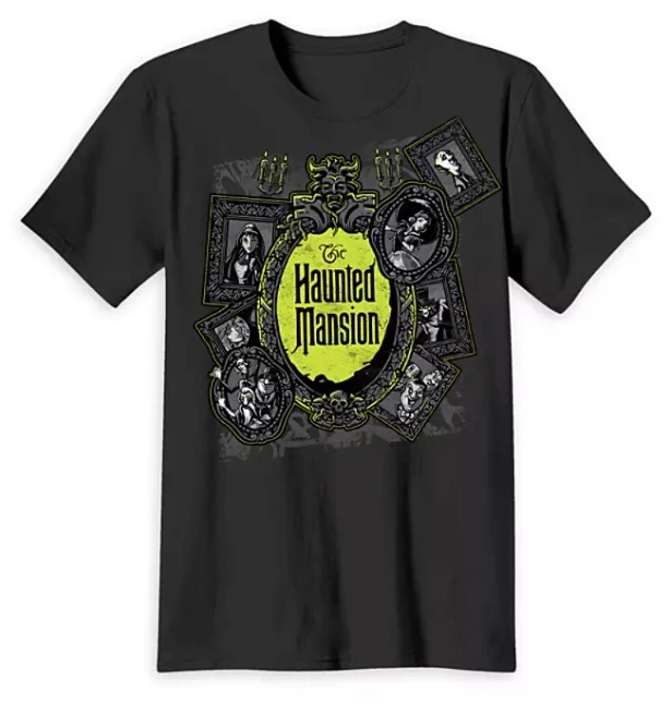 Step lively, please, into The Haunted Mansion. From among the 999 happy haunts residing in our ghostly retreat, we’ve gathered a few late favorites for a t-shirt portrait gallery alongside our immortal logo.
