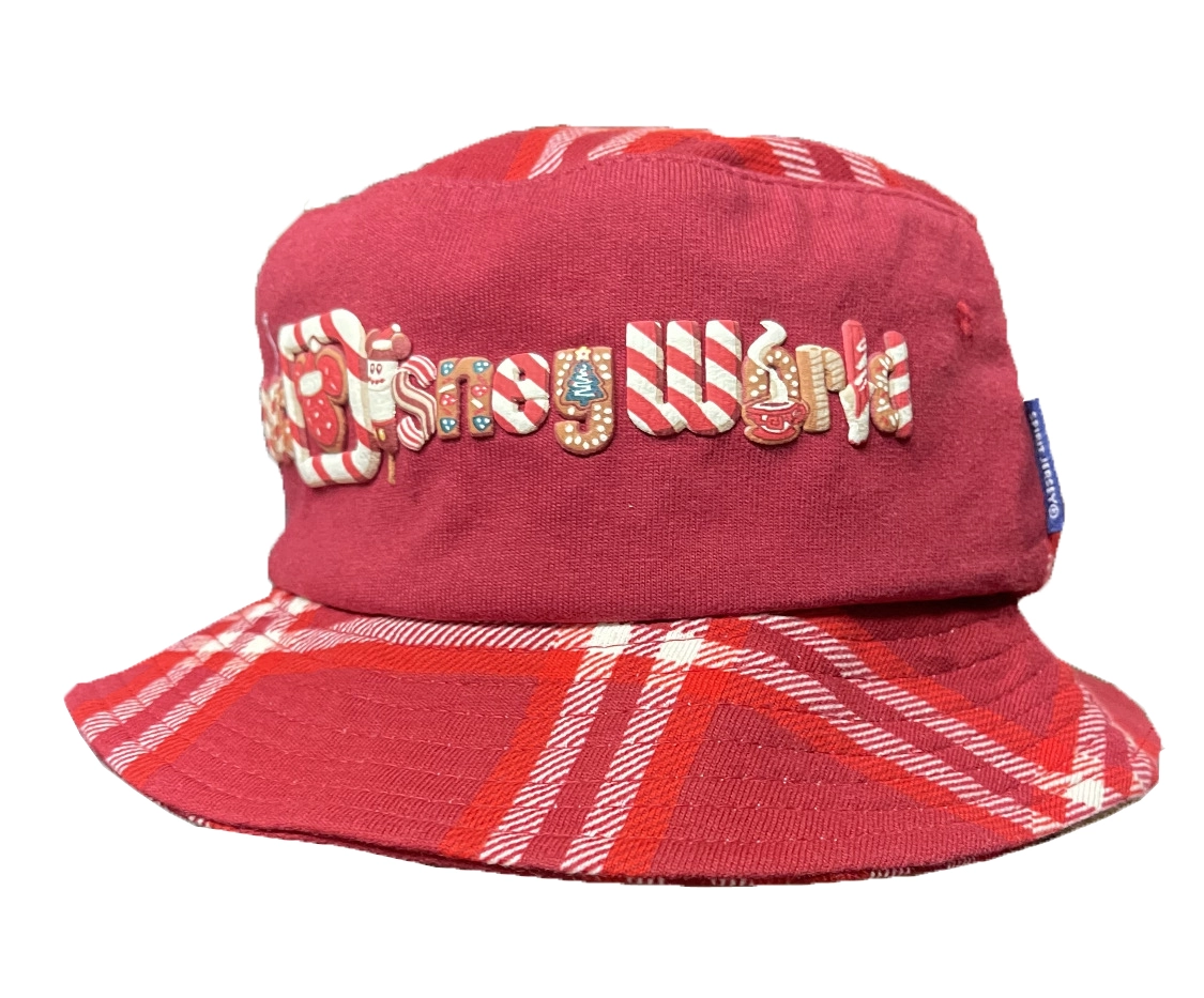 Have some fun this Holiday with this plaid Holiday Walt Disney World Bucket Hat, With Disney Treats on the letters.