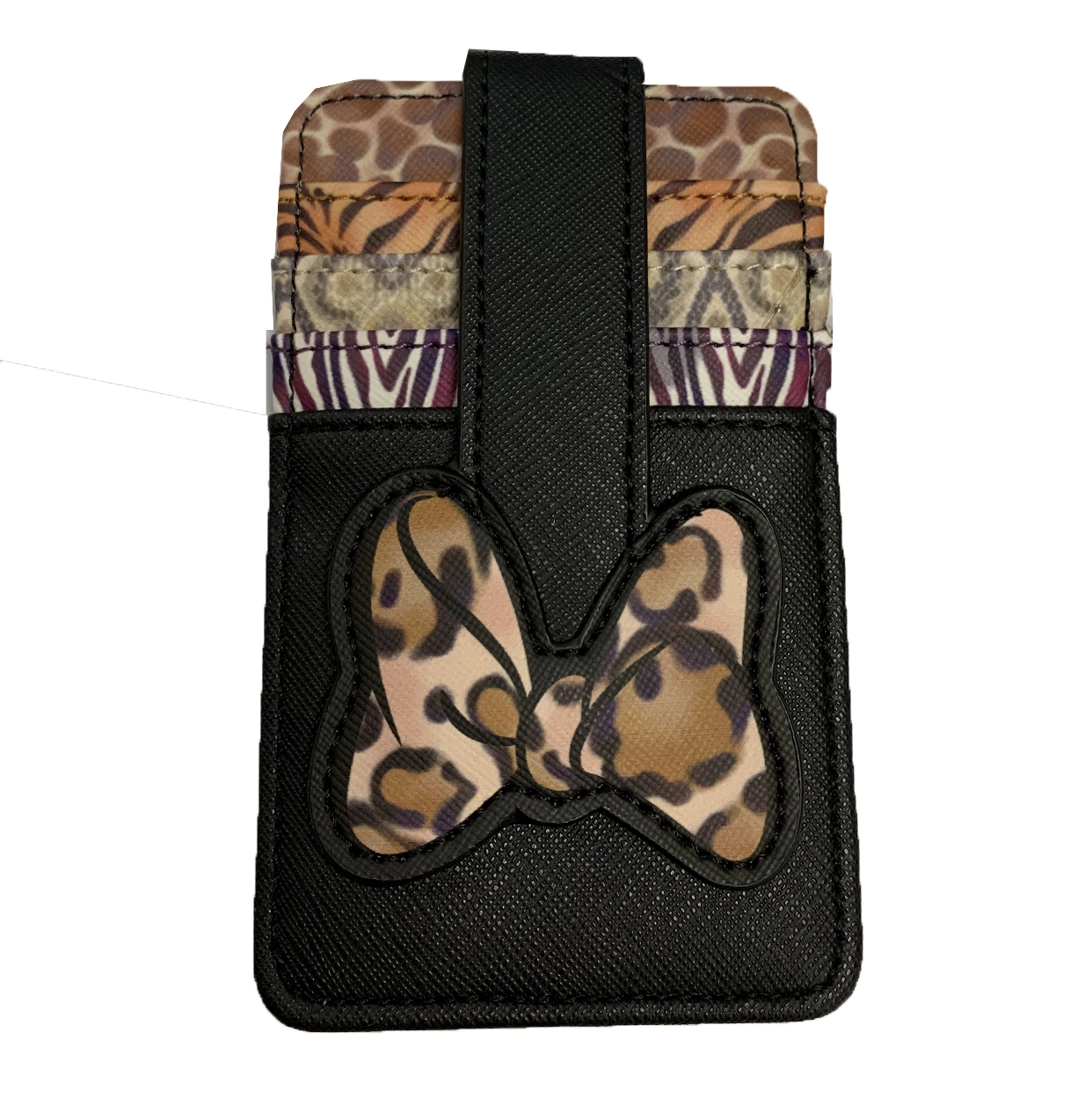 This Animal Kingdom design makes this stacked credit card holder one that will brighten every day. Fashioned in faux leather, it features a Animal Print design, and Minnie Bow snap to keep your cards safe, plus window ID holder.