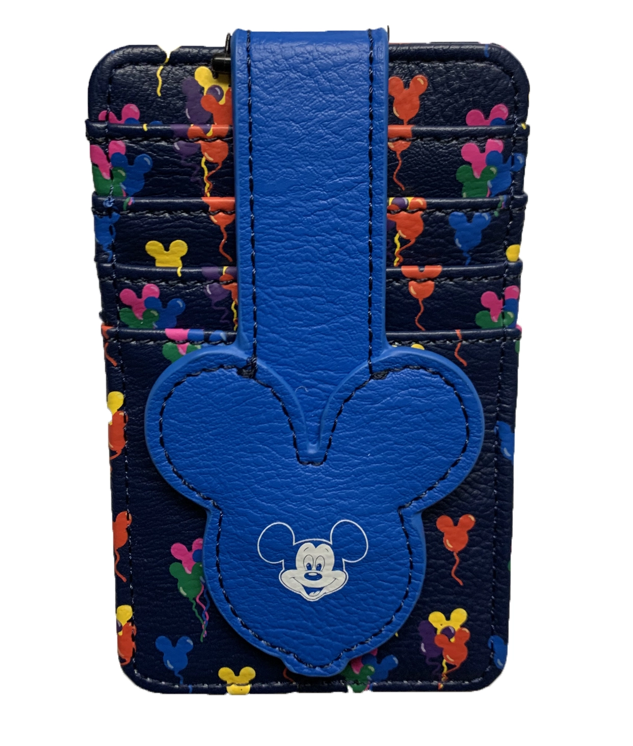 These fun Mickey Balloons makes this stacked credit card holder one that will brighten every day. Fashioned in faux leather, it features a snap with a Mickey Icon to keep your cards safe, plus window ID holder.