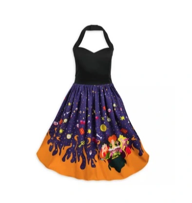 Tonight, you’ll fly in style wearing this bewitching dress inspired by the 1993 fan favorite Hocus Pocus. Conjure compliments with the Sanderson Sisters in tow on the skirt of this halter top dress featuring embroidered accents in back.