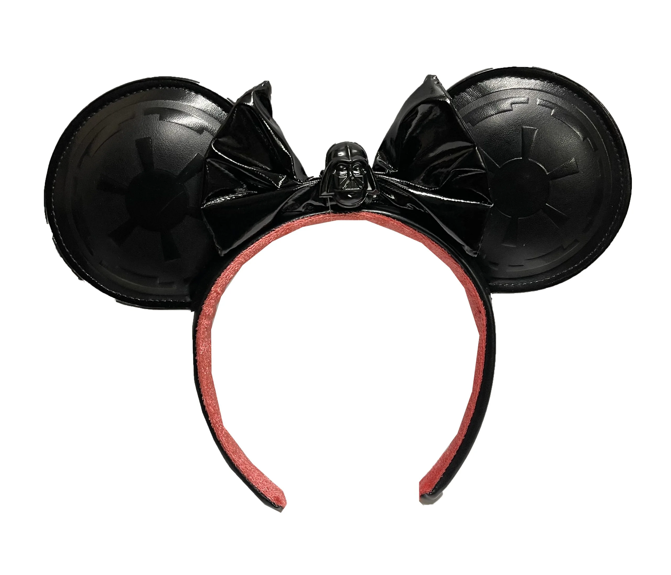 Rule the Galaxy with these Star Wars Minnie Mouse Darth Vader Ears. Features the words Rule the Galaxy on the Back Ears, and Darth Vader emblem in the center of Minnies Ears.