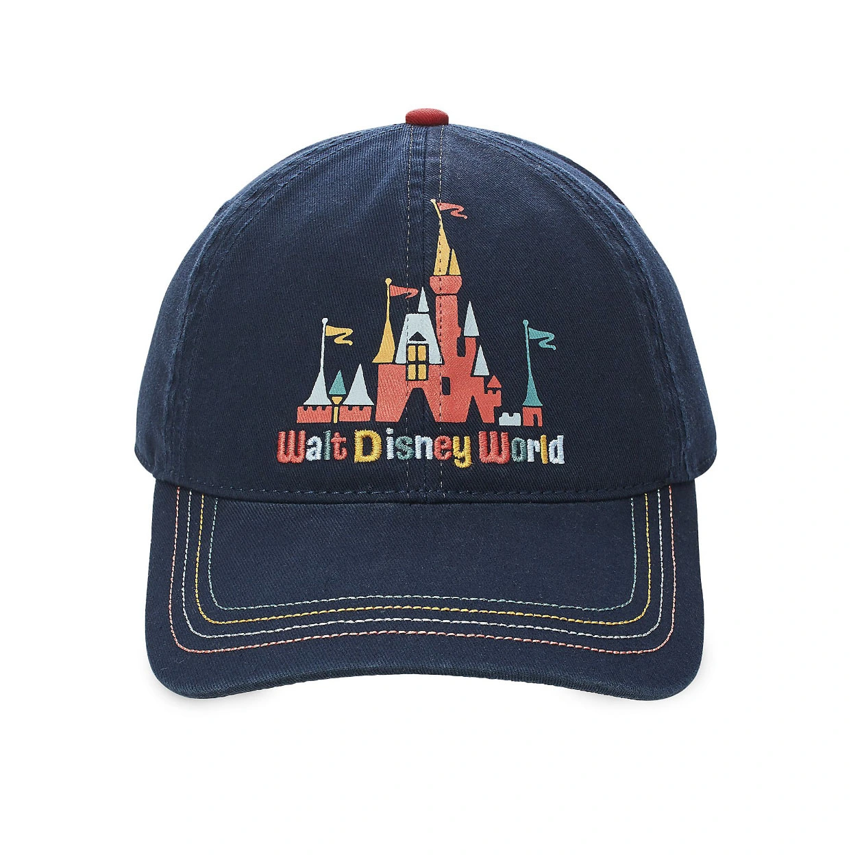 This Colorful Walt Disney World hat, Features the Fantasyland Castle on the front, with Walt Disney World logo, and the words “The most Magical Place on Earth” on the back.