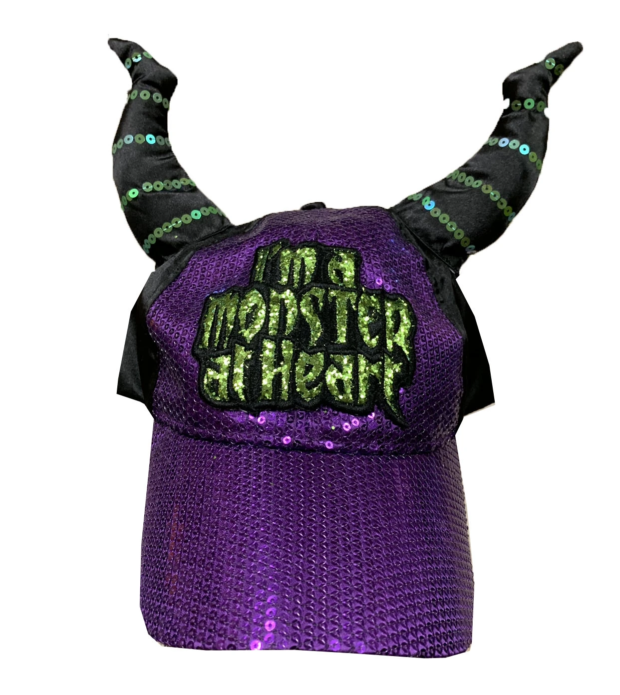 This not so spooky Maleficent Baseball Cap features a purple and bedazzled look with the words I’m a Monster at Heart.