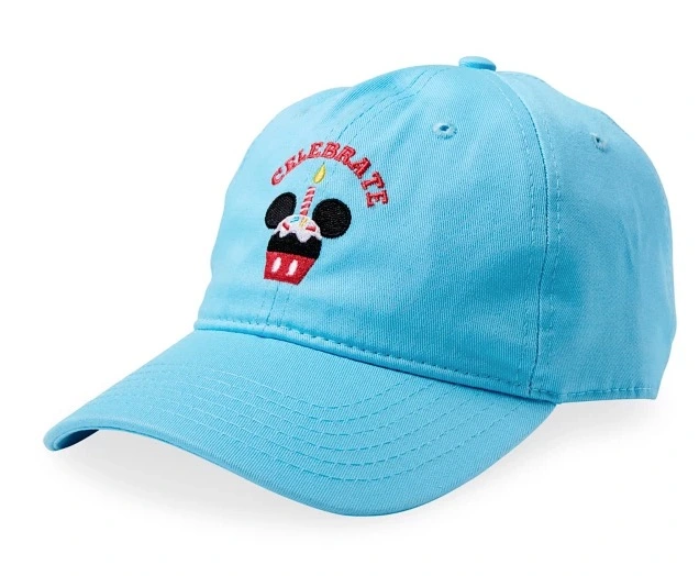 Mickey invites you to celebrate your birthday—or any festive occasion—in this all-cotton baseball cap with embroidered mouse-eared cupcake design.