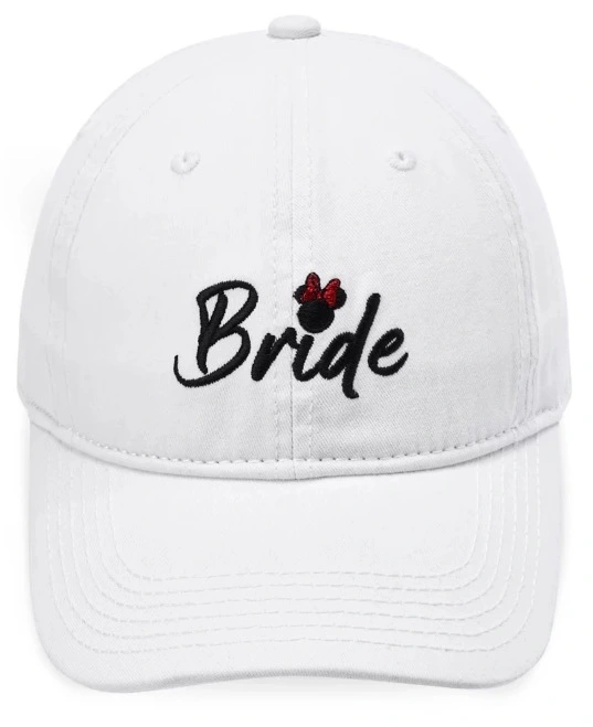 Here comes the ”Bride” in a traditional twill baseball cap featuring embroidered Minnie icon. You’ll want to pair it with our Groom cap, sold separately, or forever hold your peace.