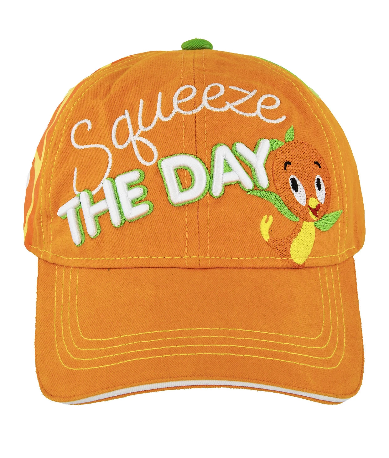 This fun Adult Baseball Cap features, The Florida Orange Bird with the wording “Squeeze the Day”.