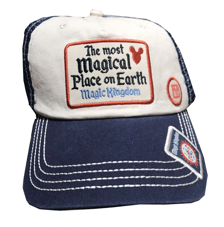 This breathable Baseball hat, Features a patch that says The Most Magical Place on Earth Magic Kingdom.