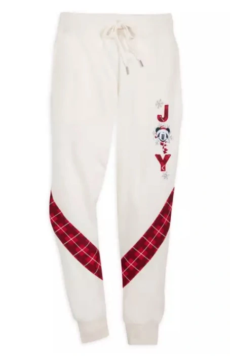 EnJOY the cozy comfort of these festive holiday joggers that feature a Mickey appliqué on the leg, plus plaid accent panels. A drawstring waist, hip pockets and ribbed ankle cuffs ensure that these lounge pants will top wish lists.