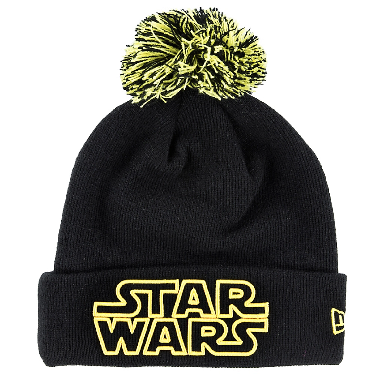 Add warmth to your wintry style with this Star Wars Knit Hat. Featuring a Star Wars Logo on the front and topped with a yellow and black pom pom.Â