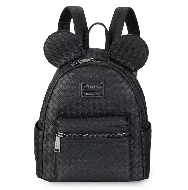 This dramatic black mini backpack is perfect for stowing all your on-the-go essentials. Featuring an allover woven design in simulated leather, this Loungefly bag is accented with 3D Mickey Mouse ears, a front zip pocket, and large main compartment.