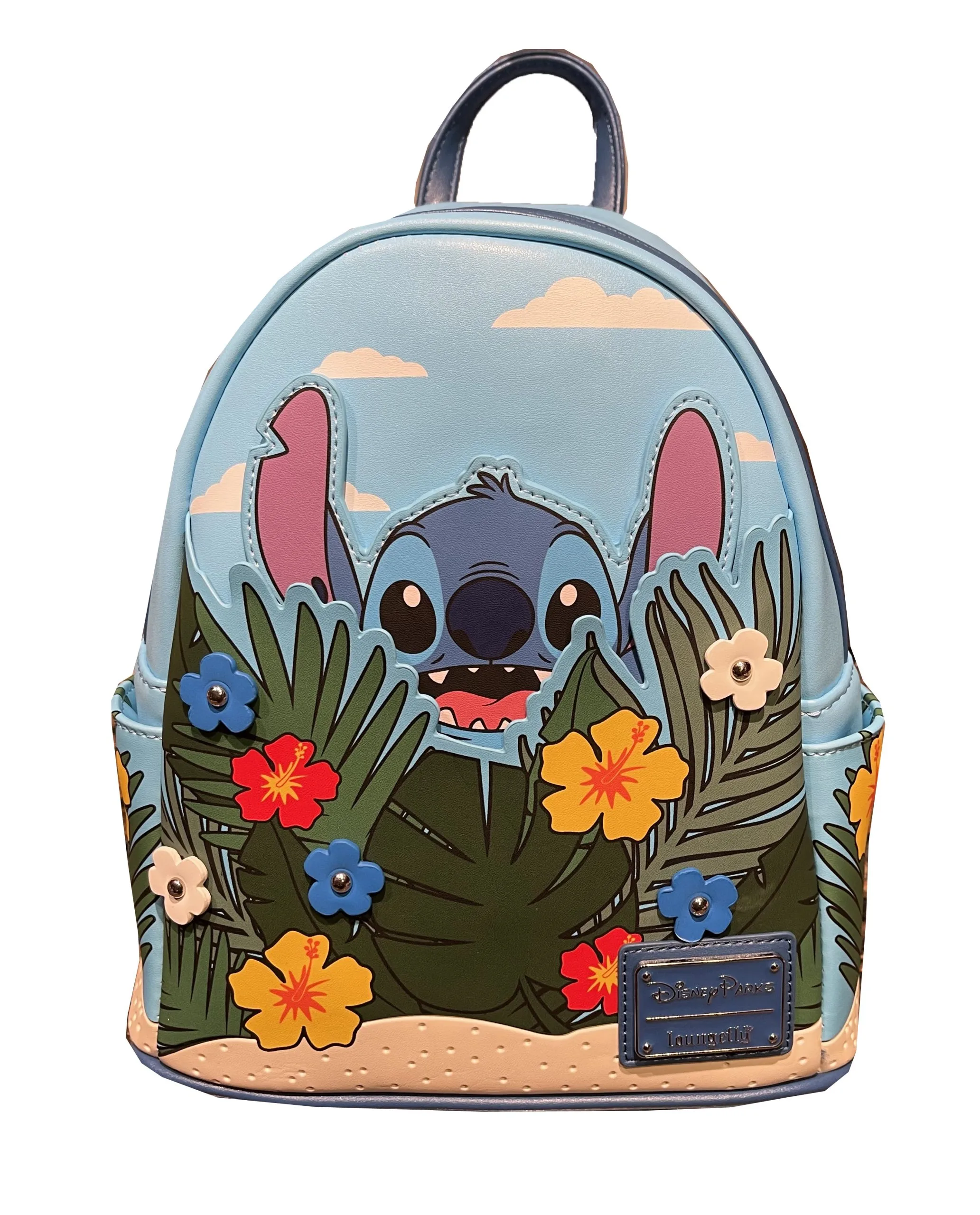 Get some facetime with Stitch when you pack your smallest essentials in style with this mini backpack by Loungefly. The pattern features A Tropical Stitch design.