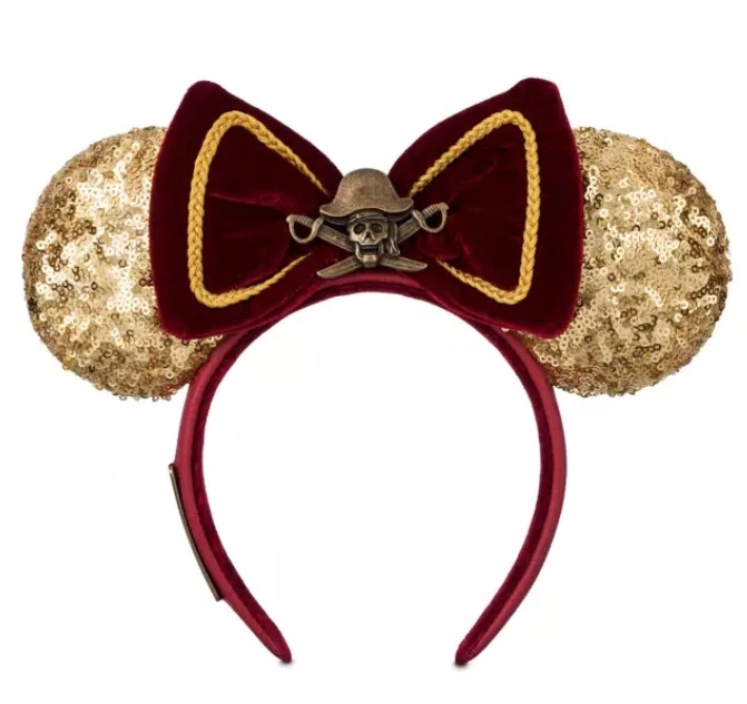 Avast me hearties! Your buccaneering spirit has struck gold with this real treasure of an ear headband by Loungefly. Inspired by Disney’s Pirates of the Caribbean movies, it features gold sequin ears, and a velvet bow accented with a detailed skull and crossbones brooch.