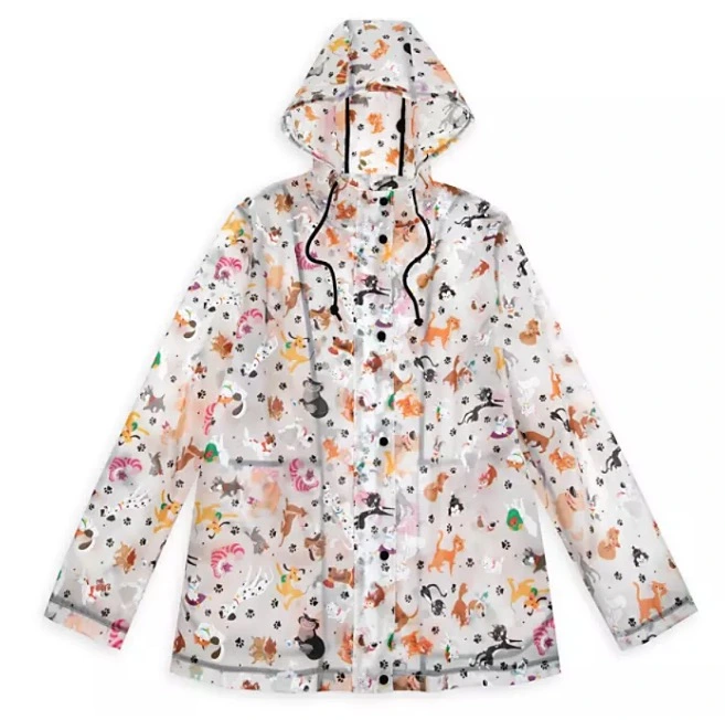Our Disney Parks Reigning Cats and Dogs jacket makes such a fine companion, you’ll want to wear it even when it’s not raining. The translucent material is covered in famous canine and feline characters, including the drawstring hood.
