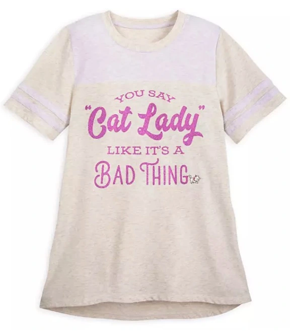 Fans of felines will love making a purr-fectly stylish statement in this heathered top featuring the glittering message, ”You say ‘cat lady’ like it’s a bad thing.” Athletic appliquĂ©s on the sleeves, a contrast yoke, and high-low hem make this shirt the cat’s meow.