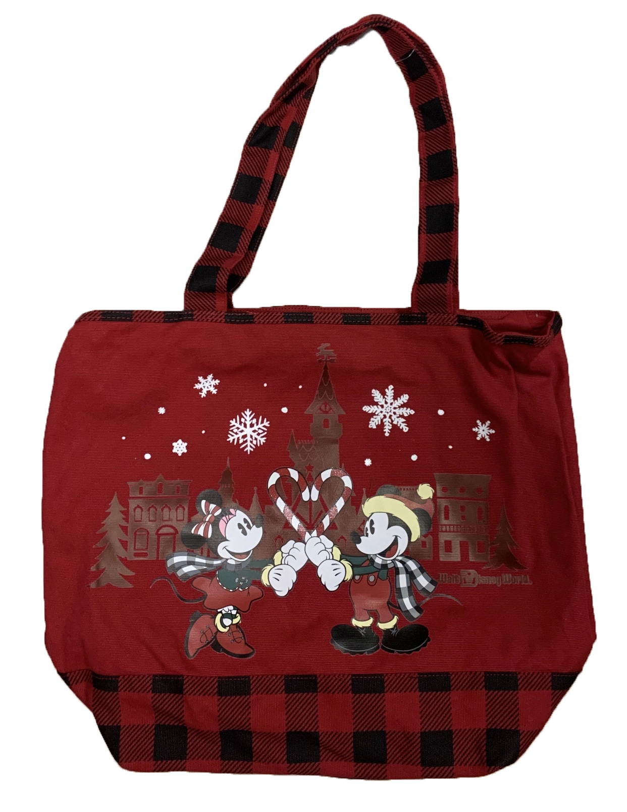 Bring in the Holidays with this festive Tote Bag. Features Mickey and Minnie Mouse holding a Candy Cane Heart. Direct from Walt Disney World.