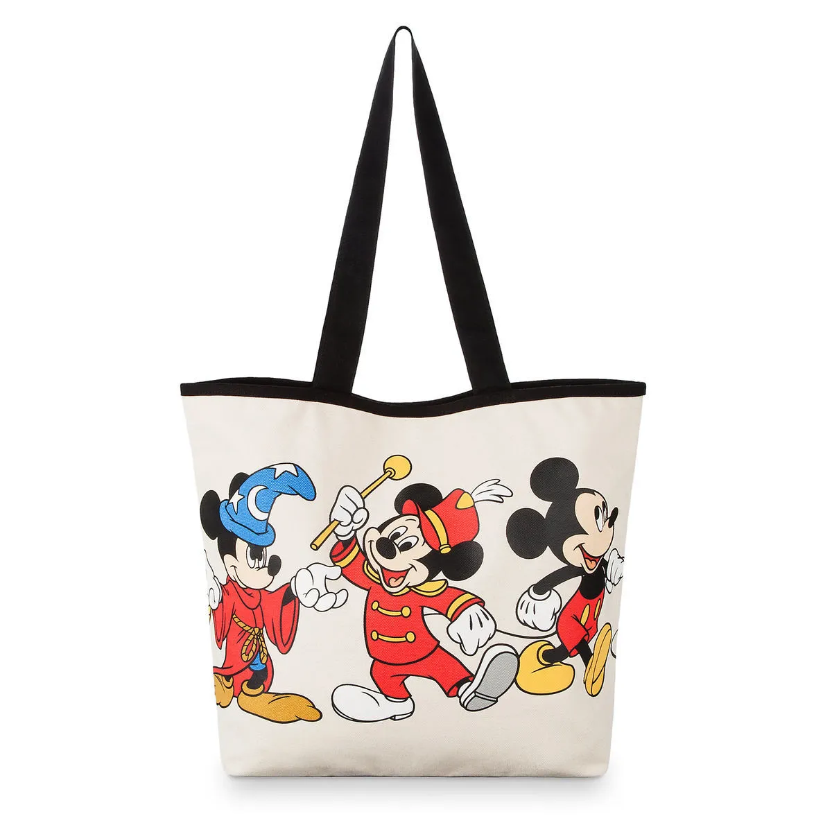 Enjoy a nostalgic time in the company of Mickey with this spacious and sturdy canvas tote. The screen art features a ”Mickey Through the Years” design picturing him in some of his most memorable roles.