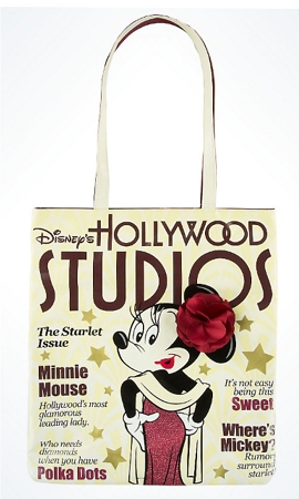 This fancy tote bag features Minnie Mouse on a magazine look, from the Starlet issue, along with the Hollywood Studios logo.