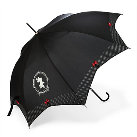 This elegant black umbrella features a framed Minnie silhouette and is