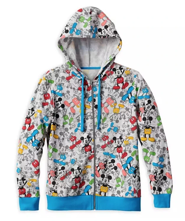Relax in the company of Mickey who’s all smiles on this fun hoodie. The allover pop art print features Mickey in a bold range of colors. Great for lounging around in, the lightweight zip top features contrasting blue trim, and coordinates with our matching shorts and pants (each sold separately).